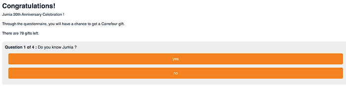 This is strange since the e-commerce retailer marked its 9th anniversary in June 2021. It also asks users to answer the questionnaire provided for a chance to win one of 78 gifts from the retail chain, Carrefour.